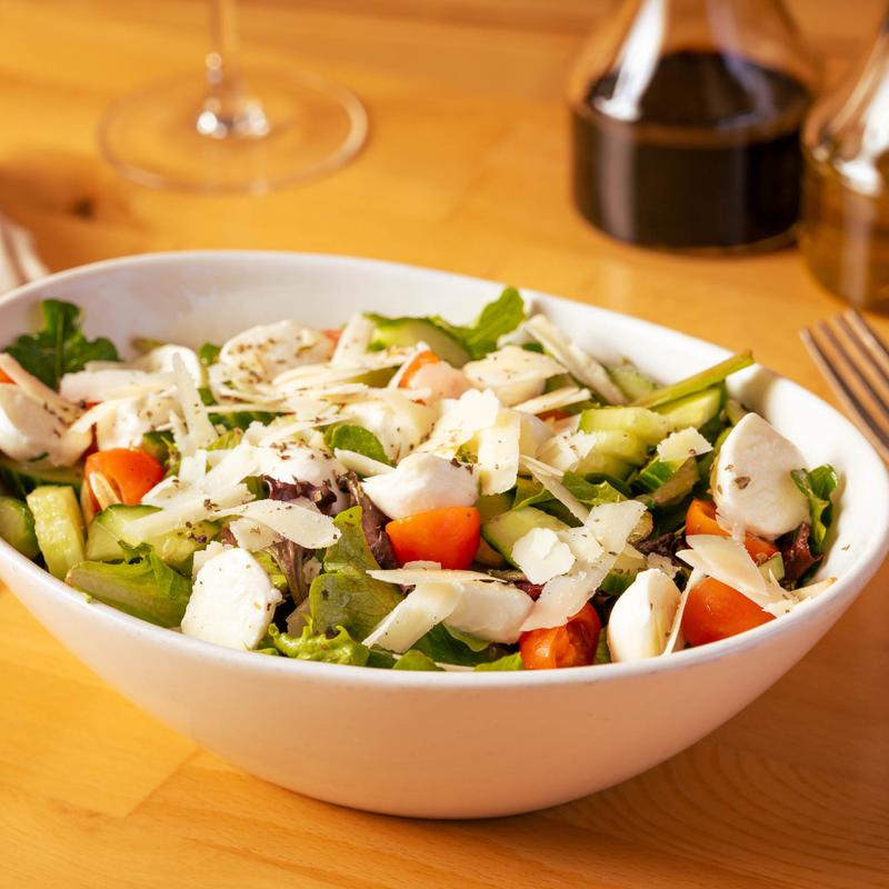 Mixed greens, tomatoes, cucumber, cherry mozzarella, shaved parmesan, extra virgin olive oil, and Modena balsamic vinegar.