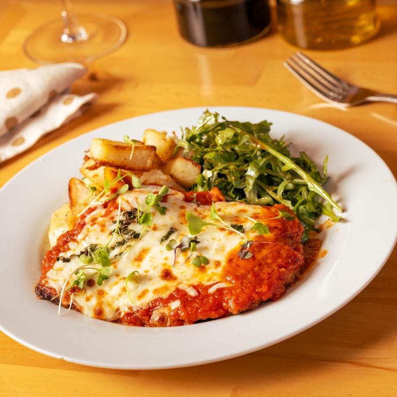 Chicken breast, mushroom, marsala sauce, rosemary potato medley.